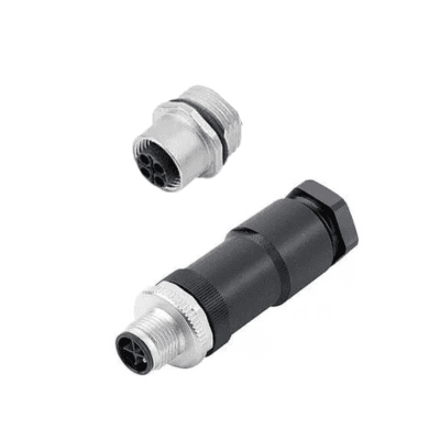 4 Way M12 (S-Coded) Female Cable Connector with Screw Contacts, 8-10mm Straight Cable Entry, IP67 (814 Series)