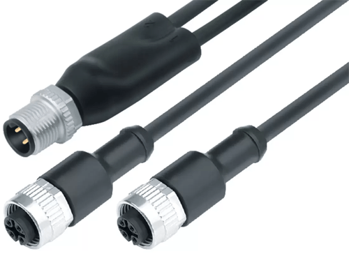A selection of M8 (A-Coded) and M12 (A-Coded) inter-series adapters, splitters and connecting cables.