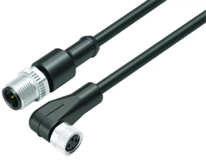 4 Way Cable Assembly, M12 (A-Coded) Straight Male to M8 (A-Coded) Angled Female, 1m Cable with Black PUR Jacket, IP67 (765 Series)
