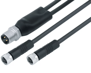 3 Way Cable Assembly, M12 (A-Coded) Straight Male to M8 (A-Coded) Straight Female, 2m Cable with Black PUR Jacket, IP67 (765 Series)