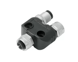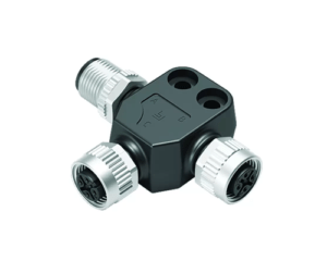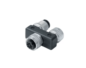 In-Line Splitter, 5 Way M12 (A-Coded) to 2 x 5 Way M12 (A-Coded), Straight Female to Angled Male & Female, IP67 (765 Series)