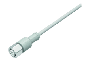 3 Way M12 (A-Coded) Cable Assembly, Straight Female to Open End, 2m Cable with Grey TPE Jacket, Stainless Steel Coupling Area, Food & Beverage Version, IP67 & IP69K (763 Series)