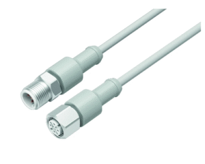12 Way M12 (A-Coded) Cable Assembly, Straight Male to Straight Female, 2m Cable with Grey TPE Jacket, Stainless Steel Coupling Area, Food & Beverage Version, IP67 & IP69K (763 Series)