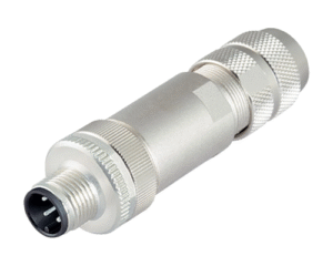 4 Way M12 (B-Coded) Male Cable Connector for Pin Contacts, 5-8mm Straight Cable Entry, Shieldable, IP67 (715 Series)