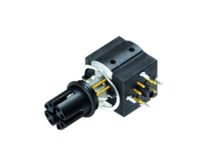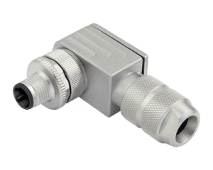 4 Way M12 (D-Coded) Male Cable Connector for Pin Contacts, 5-8mm Angled Cable Entry, Shieldable, IP67 (825 Series)