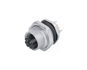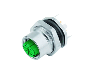 4 Way M12 (D-Coded) Female Jam-Nut Panel Connector with Dip-Solder Contacts, IP67 (825 Series)