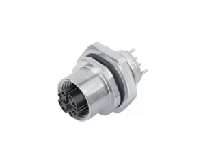 8 Way M12 (X-Coded) Female Jam-Nut Panel Connector with Dip-Solder Contacts, IP67 (825 Series)