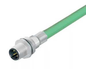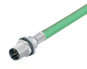 4 Way M12 (D-Coded) Male Jam-Nut Panel Connector with Pre-Cabled Contacts, 0.5m Shielded PROFINET Cable with Green PUR Jacket, IP67 (876 Series)