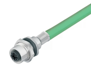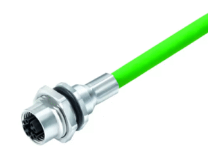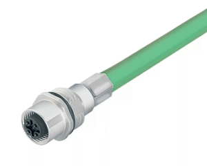 4 Way M12 (D-Coded) Female Jam-Nut Panel Connector with Pre-Cabled Contacts, 0.5m Shielded PROFINET Cable with Green PUR Jacket, IP67 (876 Series)