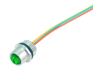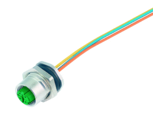4 Way M12 (D-Coded) Female Jam-Nut Panel Connector with Pre-Wired Contacts, IP67 (825 Series)