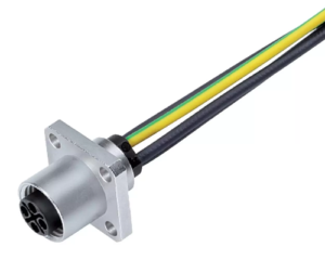 4 Way M12 (S-Coded) Female Square Flanged Panel Connector with Pre-wired Contacts, IP67 (814 Series)