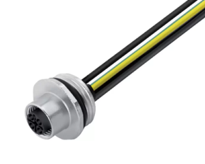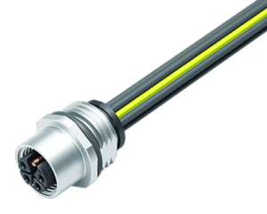 4 Way M12 (K-Coded) Female Jam-Nut Panel Connector with Pre-wired Contacts, IP67 (814 Series)