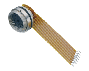 Panel receptacles are available in either front or rear fastened, with solder cup or crimp contacts or with dip solder pins or flexible PCB for board use.