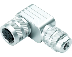 19 Way M16 Female Cable Connector with Solder Contacts, 4-6mm Angled Cable Entry, Shieldable, IP67 (423 Series)