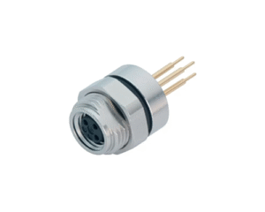 3 Way M8 (A-Coded) Female Jam-Nut Panel Connector with Dip-Solder Contacts, IP67 (718 series)