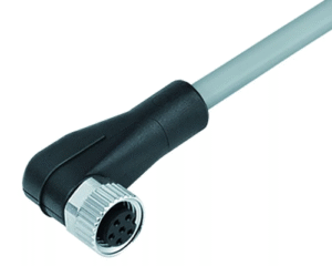 12 Way M8 (A-Coded) Cable Assembly, Angled Female to Open End, 5m Cable with Grey PVC Jacket, IP67 (718 Series)