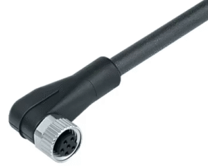 12 Way M8 (A-Coded) Cable Assembly, Angled Female to Open End, 2m Cable with Black PUR Jacket, IP67 (718 Series)