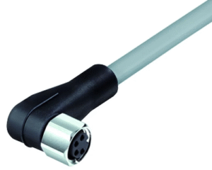4 Way M8 (A-Coded) Cable Assembly, Angled Female to Open End, 2m Cable with Black PUR Jacket, Snap-in Locking, IP67 (718 Series)