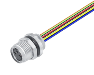5 Way M8 (A-Coded) Female Jam-Nut Panel Connector with Pre-wired Contacts, IP67 (718 Series)