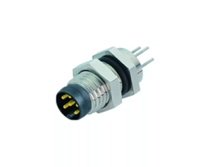 5 Way M8 (A-Coded) Male Jam-Nut Panel Connector with Dip-Solder Contacts, Shieldable, IP67 (718 series)