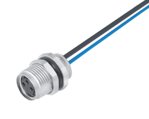 3 Way M8 (A-Coded) Female Jam-Nut Panel Connector with Pre-wired Contacts, IP67 (718 Series)