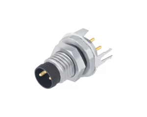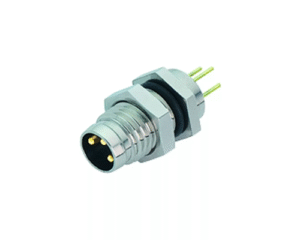 3 Way M8 (A-Coded) Male Jam-Nut Panel Connector with Angled Dip-Solder Contacts, Shieldable, IP67 (718 series)