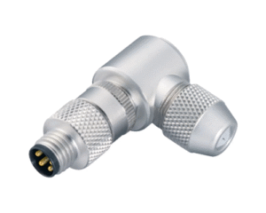 3 Way M8 (A-Coded) Male Cable Connector with Solder Contacts, 3.5-5mm Angled Cable Entry, Shieldable, IP67 (768 Series)