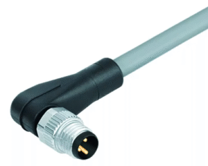 3 Way M8 (A-Coded) Cable Assembly, Angled Male to Open End, 2m Cable with Grey PVC Jacket, IP67 (718 Series)