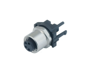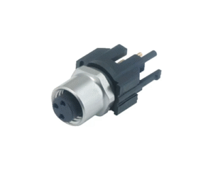 3 Way M8 (A-Coded) Female Jam-Nut Panel Connector with Angled Dip-Solder Contacts, IP67 (718 series)
