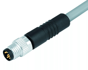 3 Way M8 (A-Coded) Cable Assembly, Straight Male to Open End, 2m Cable with Grey PVC Jacket, IP67 (718 Series)