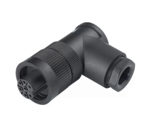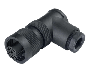 7 Way RD24 Female Cable Connector with Screw Contacts, 10-12mm Angled Cable Entry, IP67 (693 Series)