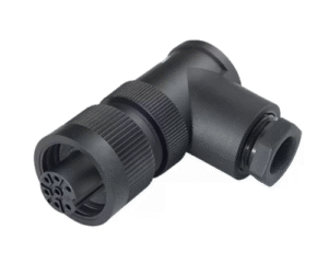 7 Way RD24 Female Cable Connector with Solder Contacts, 8-10mm Angled Cable Entry, IP67 (693 Series)