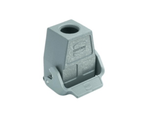 Han Size 10B Cable Connector Housing with 1 x M20 Threaded Cable Inlet, Top Entry, Low Construction, Double Lever Locking, IP65, IP66, IP67