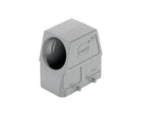 Han Size 16B Cable Connector Housing with 1 x M25 Threaded Cable Inlet, Top Entry, Low Construction, Double Lever Locking, IP65, IP66, IP67