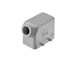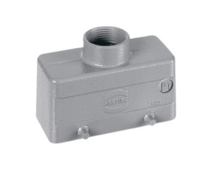 Han Size 10B Cable Connector Housing with 1 x M25 Threaded Cable Inlet, Side Entry, Low Construction, Double Lever Locking, IP65, IP66 & IP67