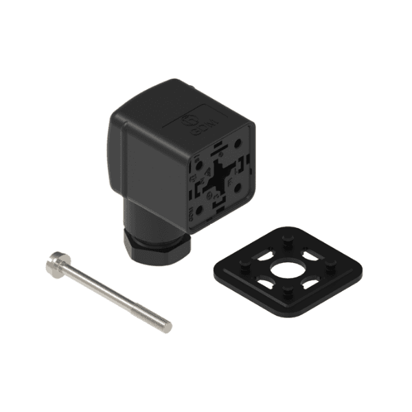 Robust multi-pin rectangular connector system with industry standard EN 175301-803 (formerly DIN 43650) central screw locking interface.
