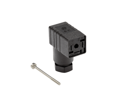 Robust multi-pin rectangular connector system with industry standard EN 175301-803-C (formerly DIN 43650) or Industrial Standard (formerly NEMA) central screw locking interface.
