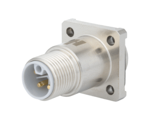 M12 (K & L Coded) Square Flange Panel Connector Shell, Male Locking Thread, IP67 & IP69K