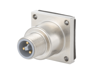M12 (S & T Coded) Square Flange Panel Connector Shell, Male Locking Thread, IP67 & IP69K