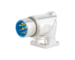 M23 (Power & Hybrid) Angled Square Flange Panel Connector Shell, Male Locking Thread, Screw Locking & Twilock Compatible, IP67 & IP69K