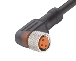 3 Way M8 (A-Coded) Cable Assembly, Angled Female to Open End, 5m Cable with Orange PVC Jacket, IP67