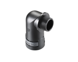 PMAFIX Conduit Connector with M25 Male Plastic Thread, Fits NW 23 / Metric 25 Conduit, Angled Entry, Black Version, IP66