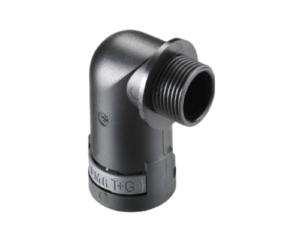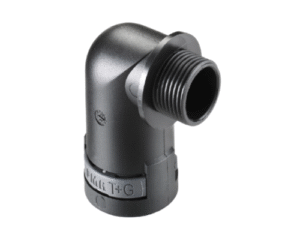 PMAFIX Conduit Connector with PG16 Male Plastic Thread, Fits NW 17 / Metric 20 Conduit, Angled Entry, Black Version, IP68