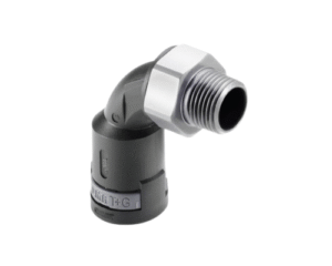 PMAFIX Conduit Connector with M25 Male Metal Thread, Fits NW 23 / Metric 25 Conduit, Angled Entry, Black Version, IP68