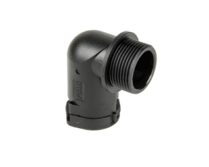 Smart-Line Conduit Connector with M25 Male Plastic Thread, Fits NW 23 / Metric 25 Conduit, Angled Entry, Black Version, IP66