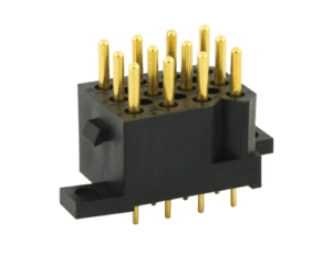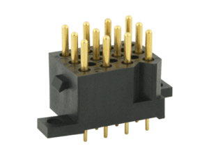 10 Way Male Flanged Angled Board Connector with Stamped Dip-Solder Contacts, IP40