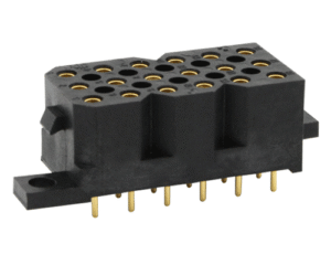 18 Way Female Flanged Angled Board Connector with Dip-Solder Contacts, IP40