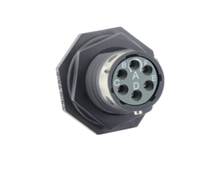 6 Way Female Jam-Nut Panel Connector with Dip-Solder Contacts, Stand Off & Hold Down Clips, IP68 & IP69K