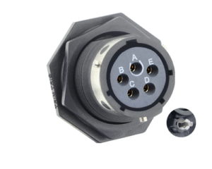 5 Way Female Jam-Nut Panel Connector with Dip-Solder Contacts, Stand Off & Hold Down Clips, IP68 & IP69K