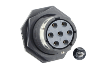 7 Way Female Jam-Nut Panel Connector with Dip-Solder Contacts, Stand Off & Hold Down Clips, IP68 & IP69K